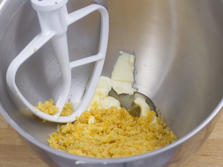 2. Mélanger les sucres avec les zestes d'orange dans un bol moyen. Frotter le tout à l'aide de vos mains afin de faire ressortir les arômes. Réserver.