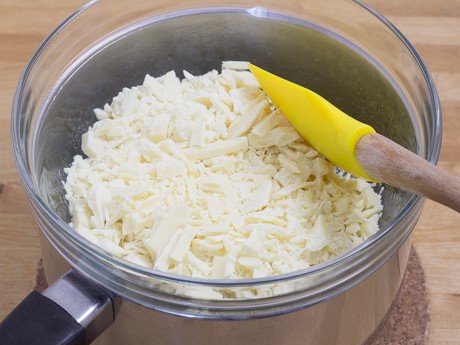 13. Mettre le chocolat blanc dans un bol résistant à la chaleur. Verser 1 pouce (2.5 centimètres) d'eau dans une petite casserole et porter à ébullition. Fermer le feu et mettre le bol par-dessus la casserole. Remuer jusqu'à ce que le chocolat soit lisse et brillant.