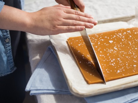 Verser délicatement le caramel dans le moule et saupoudrer de sel si désiré. Laisser tempérer à température pièce pendant au moins deux heures.