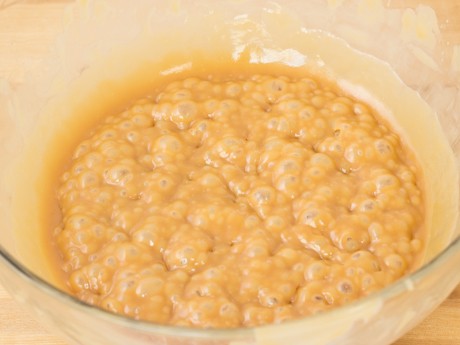 Cuire au four à micro-ondes pendant six minutes à puissance élevée en brassant aux deux minutes. Après six minutes, la température sur un thermomètre à bonbons devrait indiquer 245°F (118°C). Poursuivre la cuisson à raison de 30 secondes à la fois si la température est plus basse. Si vous n’avez pas de thermomètre, vous pouvez déposer une petite quantité de caramel dans un verre d’eau froide. Une boule malléable devrait se former.