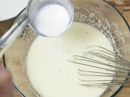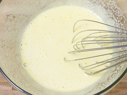 Ajouter graduellement la crème chaude au mélange d’oeufs en fouettant.