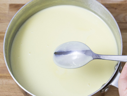 Combiner le lait, la crème, le Sucre Granulé Redpath® et le sel dans une casserole moyenne. Faire chauffer à feu moyen jusqu’à ce que la préparation commence à mijoter. Retirer du feu.