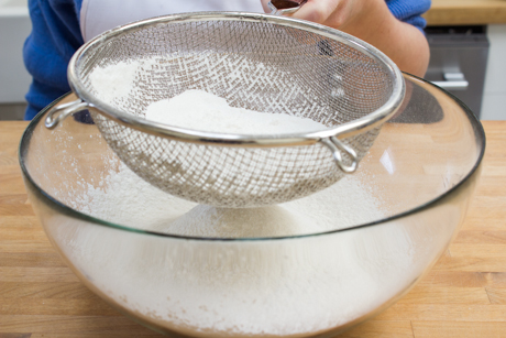 Dans un bol moyen, tamiser ensemble la farine et la fécule de maïs (ou mettre la farine à gâteau), la poudre à pâte, le bicarbonate de soude et le sel. Réserver.