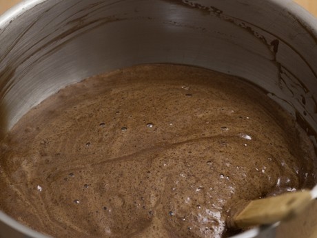 5. Ajouter les ingrédients secs en trois additions en prenant soin de soulever la masse à l’aide d’une spatule ou d’un fouet jusqu’à ce que les ingrédients secs soient incorporés. Ajouter graduellement le beurre, toujours en pliant la masse.