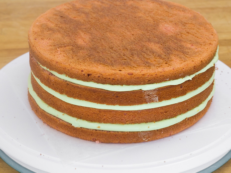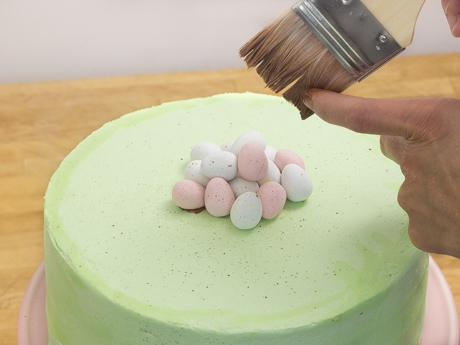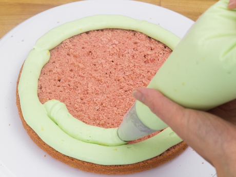 Gâteau tacheté aux fraises Gâteau tacheté aux fraises L’arrivée du printemps annonce le retour du soleil, des fleurs et du chant des oiseaux. Plus particulièrement celui du rouge-gorge, dont les oeufs nous ont inspirés ce magnifique gâteau tacheté aux fraises de quatre étages. N’hésitez pas à le personnaliser selon votre occasion spéciale. Categories: Gâteaux et cupcakes Glaçages et ganaches Desserts Sucre Granulé icing sugar RENDEMENT 12 à 16 portions (un gâteau de 8 po de 4 étages) TEMPS DE PRÉPARATION 40 minutes TEMPS DE CUISSON 1 heure INGRÉDIENTS Ingrédients pour le gâteau aux fraises 3 ¼ tasses (364 g) de farine à gâteau. 4 c. à thé (20 g) de poudre à pâte. ¼ c. à thé (1 g) de bicarbonate de soude. ½ c. à thé (3 g) de sel. ½ tasse (120 ml) de yogourt. 3 oeufs de calibre gros. 2 c. à thé (10 ml) d’extrait de vanille pure. ¾ tasse (170 g) de beurre non salé, tempéré. 1 ½ tasse (300 g) de Sucre Granulé Redpath®. ⅔ tasse (160 ml) de lait. 1 recette de purée de fraises (recette ci-dessous). 10 à 12 petits oeufs en chocolat dans une coquille de sucre pour garnir (optionnel). Ingrédients pour la purée de fraises 1 tasse (125 g) de fraises fraîches ou congelées. 2 c. à thé (4 g) de zeste de citron, finement râpé.. 2 c. à thé (10 ml) de jus de citron frais. 3 gouttes de colorant alimentaire en gel rouge. Ingrédients pour la crème au beurre, au fromage à la crème et au citron 2 tasses (454 g) de fromage à la crème, tempéré. ¾ tasse (170 g) de beurre non salé, tempéré. ½ c. à thé (3 g) de sel. 3 ¾ à 4 ¼ tasses (450 g à 510 g) de Sucre à Glacer Redpath®. 1 c. à table (15 ml) de jus de citron frais. 1 c. à thé (3 g) de zeste de citron, finement râpé. 1 c. à thé (5 ml) d’extrait de vanille. 1 à 2 c. à thé (5 à 10 ml) de crème (optionnel). 3 à 4 gouttes de colorant alimentaire en gel vert, ou selon la teinte désirée. Ingrédients pour la peinture comestible 4 c. à thé (20 ml) d’extrait de vanille. 1 ½ c. à thé (4 g) de poudre de cacao. Méthode Préparation du gâteau aux fraises Préchauffer le four à 350℉ (180℃). Graisser deux moules ronds de 8 pouces et 1.5 pouce de hauteur (20 x 3.6 centimètres) et couvrir le fond de papier parchemin. Réserver. Combiner en fouettant la farine, la poudre à pâte, le bicarbonate de soude et le sel dans un grand bol. Fouetter le yogourt, les oeufs et l’extrait de vanille dans une tasse à mesurer. Réserver. Crémer le beurre dans le bol d’un batteur sur socle munit du fouet plat. Ajouter le Sucre Granulé Redpath® et mélanger pendant trois minutes ou jusqu’à ce que le mélange palisse et devienne mousseux. Ajouter la moitié des ingrédients secs et mélanger. Ajouter ensuite le reste des ingrédient secs et continuer à mélanger jusqu’à ce que la préparation ressemble à une chapelure grossière. Verser le lait et mélanger à basse vitesse puis augmenter jusqu’à vitesse moyenne jusqu’à ce que la préparation devienne homogène, soit environ une minute. Ajouter la moitié de la préparation d’oeufs en mélangeant bien avant d’ajouter le reste. Ajouter ensuite la purée de fraises et bien incorporer. Ne pas trop mélanger. Diviser la pâte également entre les deux moules préparés. Cuire pendant 30 minutes ou jusqu’à ce qu’un cure-dent inséré au centre en ressorte propre. Laisser tempérer dans le moule pendant cinq minutes avant de démouler. Transférer les gâteaux sur une grille et laisser tempérer complètement avant de manipuler. Préparation de la purée de fraises Réduire les fraises, le zeste et le jus de citron en purée à l'aide d'un pied mélangeur ou d'un robot culinaire jusqu'à consistance lisse. Ajouter quelques gouttes de colorant alimentaire en gel rouge. Réserver. Préparation de la crème au beurre, au fromage à la crème et au citron Crémer le fromage à la crème, le beurre et le sel dans le bol d’un batteur sur socle munit du fouet plat jusqu’à l’obtention d’une texture lisse et crémeuse, soit environ deux minutes. Tamiser le Sucre à Glacer Redpath® dans un bol moyen. Ajouter le sucre à glacer tamisé une tasse à la fois en mélangeant à basse vitesse puis en augmentant à vitesse élevée jusqu’à ce qu’il soit bien incorporé. Ajouter du sucre à glacer jusqu’à la consistance désirée. Ajouter le jus et le zeste de citron et l’extrait de vanille et bien incorporer. Ajouter le colorant alimentaire en gel vert et la crème si nécessaire. Mélanger jusqu’à ce que la couleur soit uniforme. Préparation de la peinture comestible Mélanger l’extrait de vanille et la poudre de cacao dans un petit bol jusqu’à consistance homogène. Ayez un pinceau à pâtisserie propre sous la main. Pour assembler le gâteau tacheté aux fraises Retirer la partie bombée du dessus de chaque gâteau à l’aide d’un couteau dentelé. Déposer le gâteau sur un plateau tournant ou une surface confortable pour travailler. Couper le gâteau en deux parties égales en tournant le plateau pour faciliter la coupe. Répéter pour l’autre gâteau. Déposer l’un des deux dessous de gâteau sur le plateau tournant. Remplir une poche à pâtisserie munit d’une grosse douille ronde de la crème au beurre. Couvrir de crème au beurre en traçant des cercles et étendre uniformément à l’aide d’une petite spatule à glaçage. Mettre le deuxième étage de gâteau par-dessus en pressant légèrement pour bien le tenir en place et en vous assurant de garder un dessous de gâteau pour le dernier étage afin d’obtenir un gâteau bien plat sur le dessus (voir photo ci-dessous). Couvrir de crème au beurre et répéter pour le troisième étage. Pour le quatrième étage, assurez-vous de mettre le côté plat du dessous du gâteau vers le haut. Étendre une fine couche de crème au beurre sur toute la surface du gâteau afin d’emprisonner les miettes, c’est ce qu’on appell
