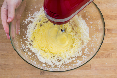 Dans un grand bol, battre en crème le beurre et le sucre. Ajouter l’œuf et battez jusqu’à ce que tout soit bien mélangé.