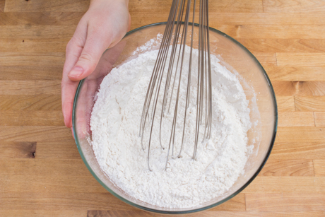Dans un autre bol, fouetter ensemble la farine et la levure, puis mettre de côté.