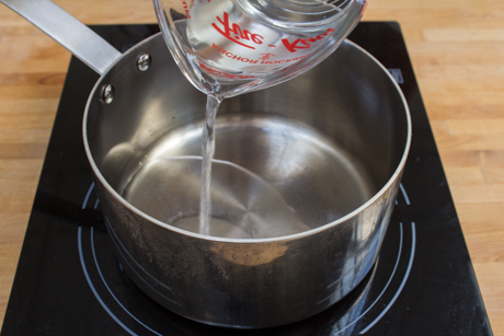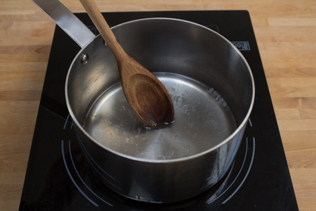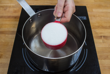 Mélanger l’eau et le sucre dans une casserole et cuire à feu moyen jusqu’à ce que le sucre soit dissous. Ne vous inquiétez pas si le mélange commence à bouillir, simplement baisser le feu légèrement et attendre que le sucre soit complètement dissout.